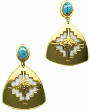 14K Gold and Turquoise Earrings "Navaho Shield" Fine 14K Gold and Bezel-Set Spider-Web Turquoise $495. Limited Edition by Thomas H. Gilbert |