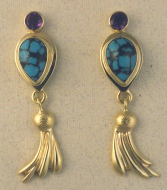 14K Gold AAA Spider Web Turquoise and AAA Amethyst Earrings $325. Limited Edition by Thomas H. Gilbert |