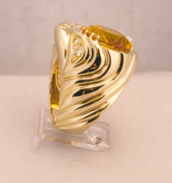 Contemporary 14 Kt. Gold Ring Fantasy Cut Rio Grande Citrine with Diamonds One of a Kind 1/1