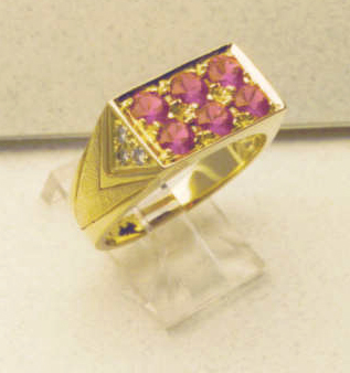 One Of A Kind 1/1 14Kt. Gold Contemporary Geometric With Thai Rubies and Diamonds