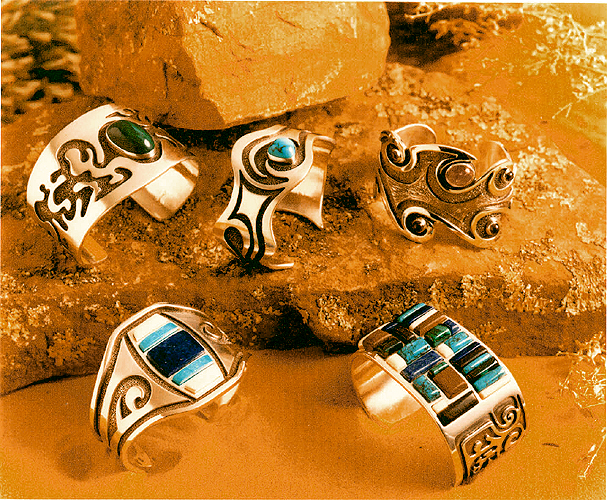1.Bracelet with lapis, morenci, turquoise, mastadon ivory inlayed.
